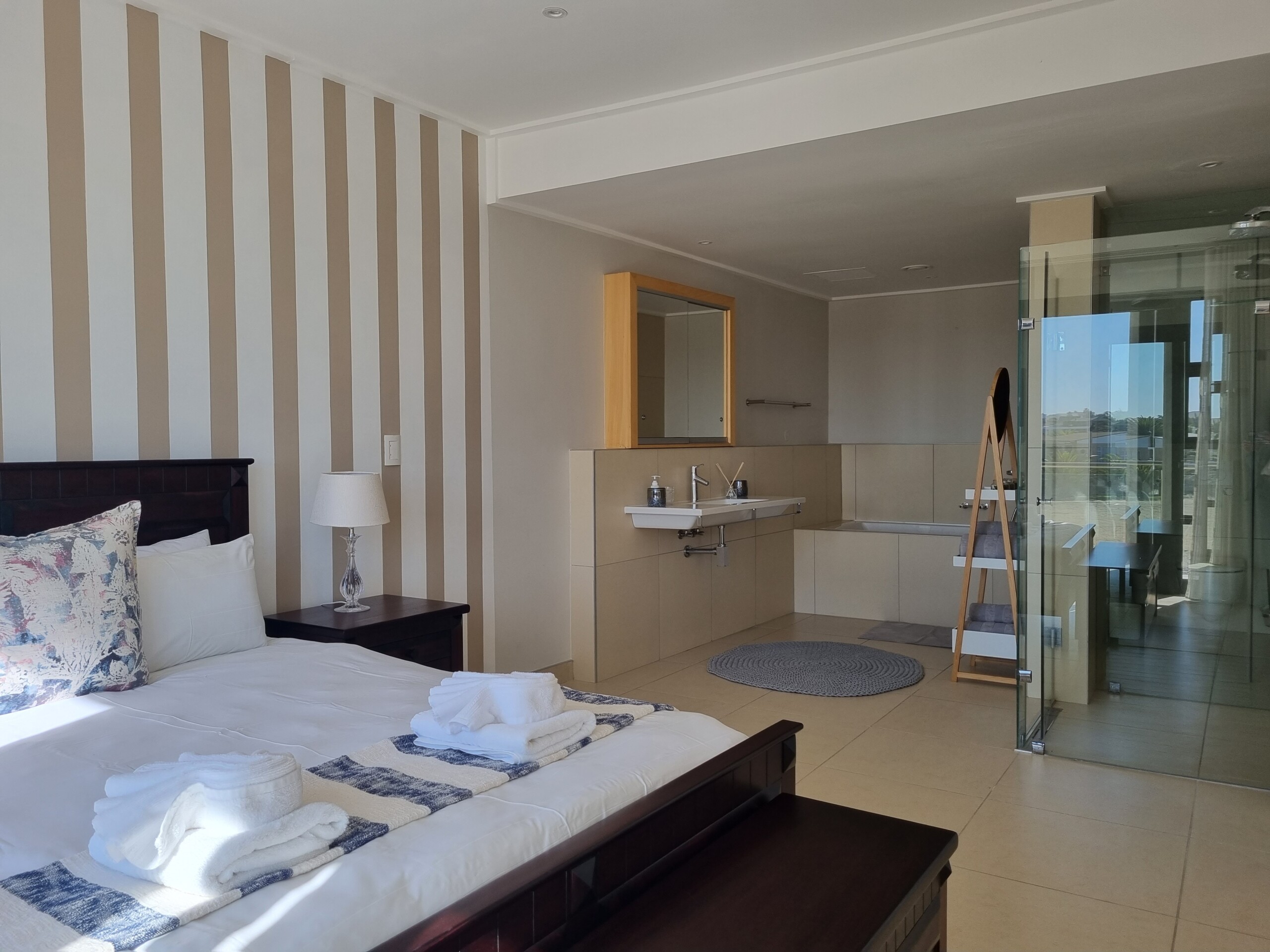 Our beautiful, luxury self-catering apartment, is located in The Premier Waterfront Living complex situated just next to the Platz Am Meer Mall in Swakopmund. This studio apartment can accommodate up to 2 guests, presented with everything and so much more that you may need during your holiday break-away.